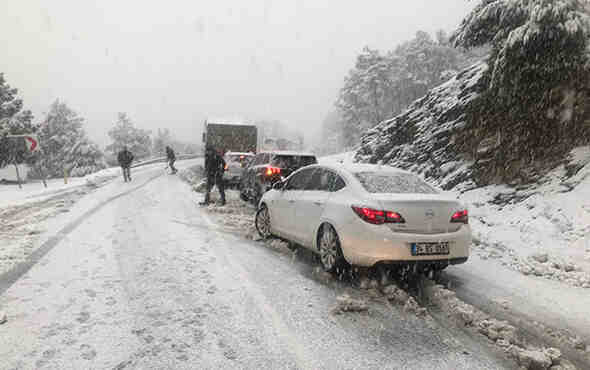 Önceki gün öğle saatlerinde başlayan kar yağışı Antalya-Konya karayolunda trafiği durma noktasına getirdi.